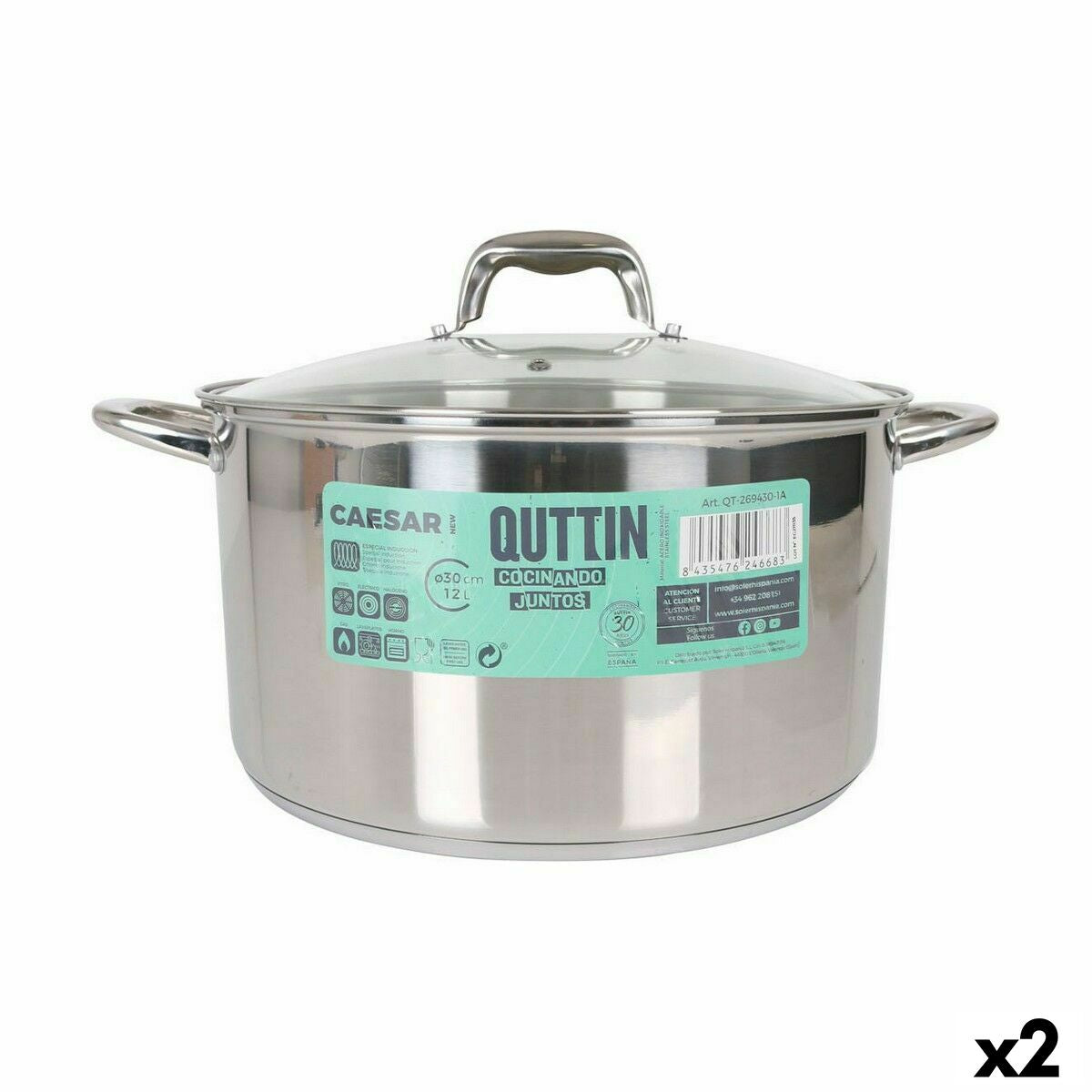 Topf mit Glasabdeckung Quttin Caesar Stahl ø 30 x 17,5 cm (2 Stück) zum besten Preis.