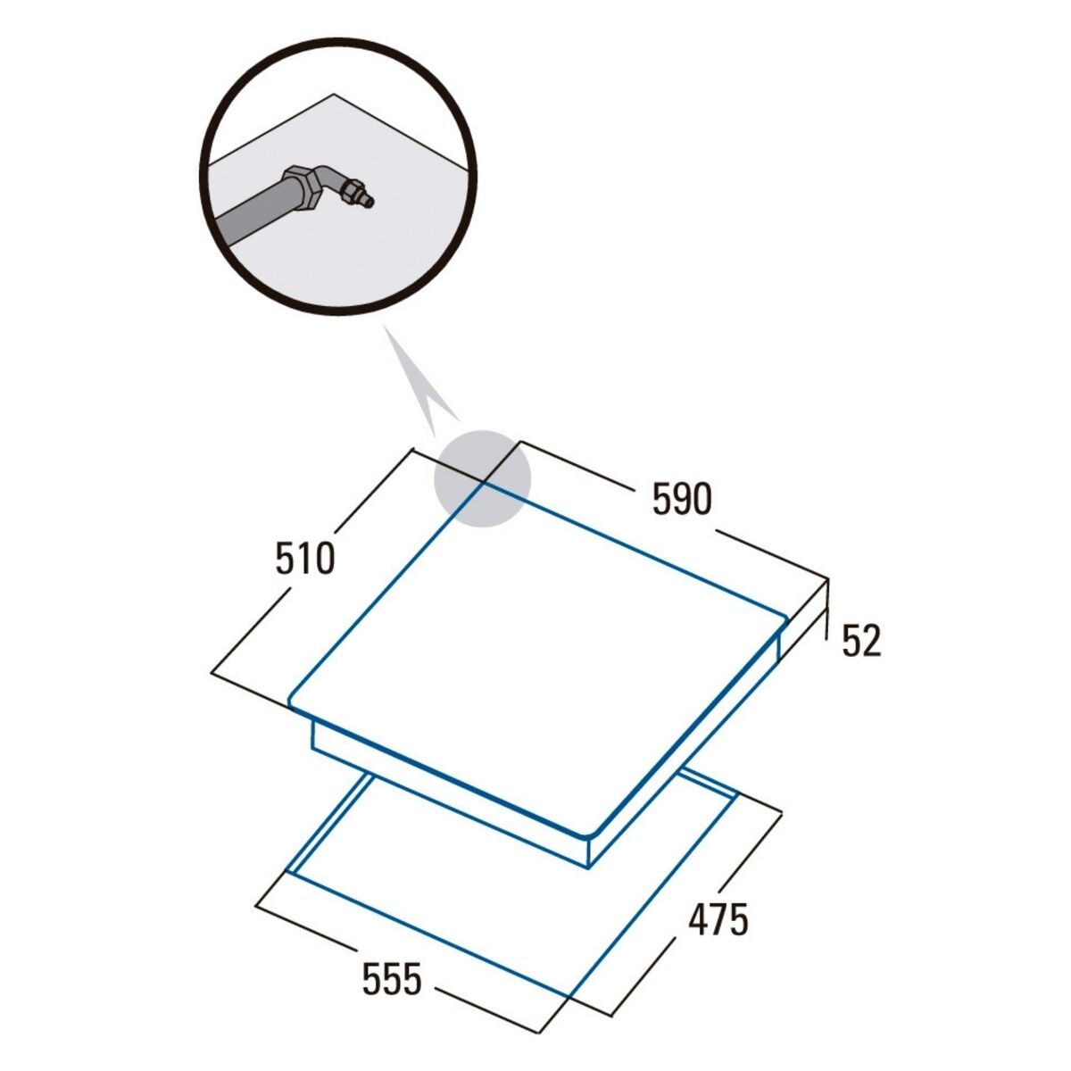 • Installationsfach: 55,5 cm Breite | 47,5 cm Tiefe