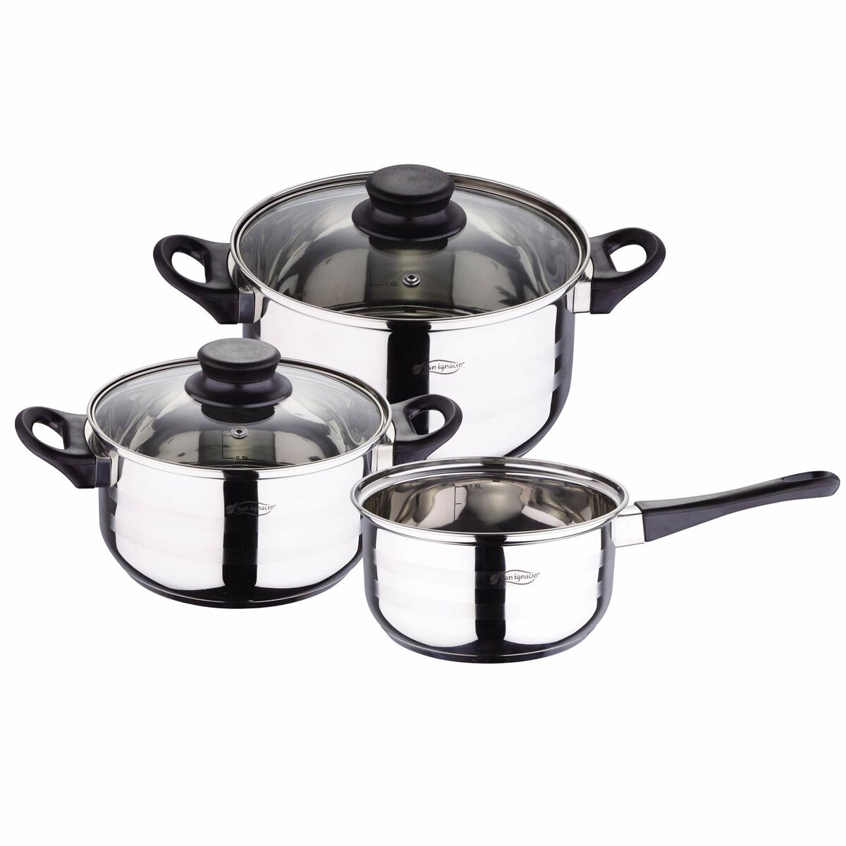 Das San Ignacio Toledo SG-8050 Topfset kombiniert hochwertige Verarbeitung mit funktionalem Design und eignet sich perfekt für den täglichen Gebrauch. Gefertigt aus rostfreiem Edelstahl, bietet es eine gleichmäßige Wärmeverteilung und sorgt für optimale Kochergebnisse. Die ergonomischen Griffe ermöglichen eine bequeme Handhabung, während die glänzende und matte Edelstahl-Oberfläche für eine stilvolle Optik sorgt. Geeignet für alle Herdarten, einschließlich Induktion, ist dieses Set die ideale Ergänzung für jede moderne Küche.