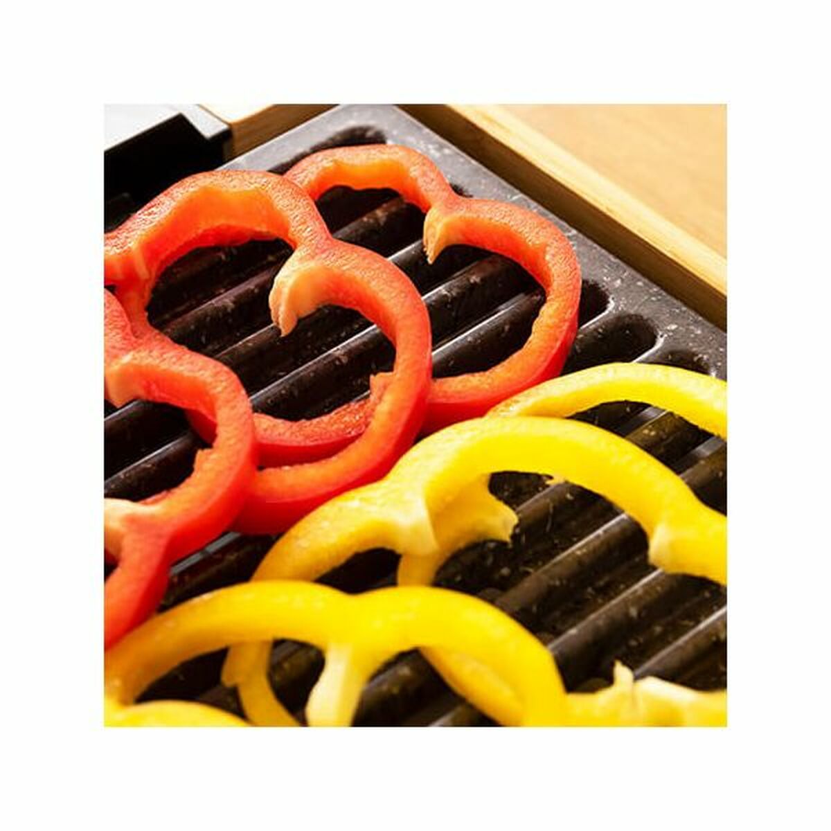 Der Cecotec Tasty&Grill 2000 Bamboo LineStone ist ein stilvoller elektrischer Tischgrill mit Bambusrahmen, der für gesundes und fettarmes Grillen entwickelt wurde. Mit 2000 W Leistung und einer großzügigen Grillfläche von 37,5 x 24,5 cm bietet er ausreichend Platz für Fleisch, Fisch und Gemüse. Der verstellbare Thermostat sorgt für die perfekte Temperaturkontrolle, während die Antihaftbeschichtung ein Anhaften verhindert. Dank der Fettabscheiderwanne und der Möglichkeit, die Grillplatte in der Spülmaschine zu reinigen, ist die Reinigung besonders einfach.