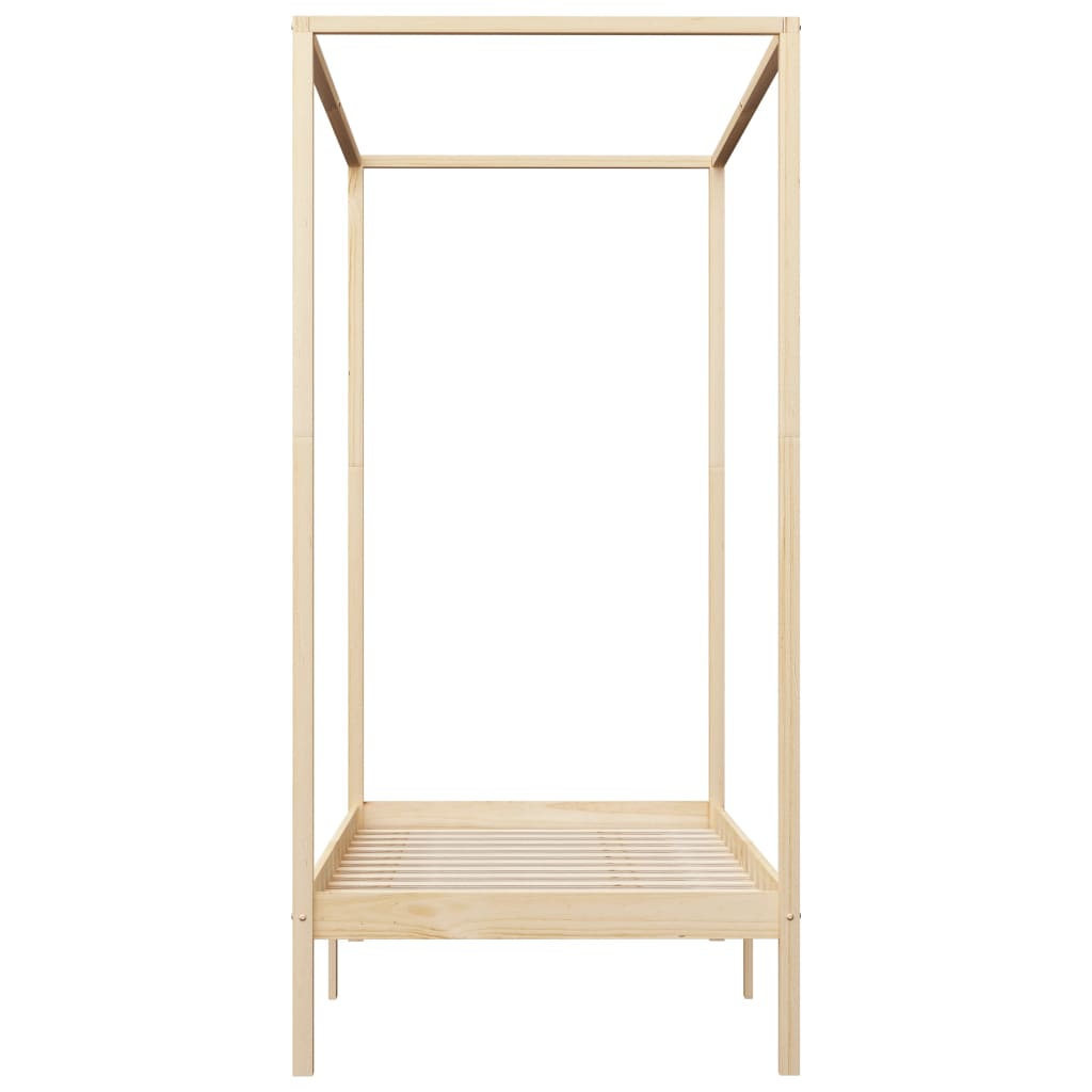 Bringen Sie einen Hauch von Eleganz in Ihr Schlafzimmer mit diesem zeitlosen Himmelbettrahmen aus Massivholz! Das Bett ist mit einem Oberrahmen zum Aufhängen Ihrer Lieblingsvorhänge ausgestattet, was Ihrem Schlafzimmer einen einzigartigen Charme verleiht und gleichzeitig zusätzliche Privatsphäre schafft. Dieser Bettrahmen aus massivem Kiefernholz ist äußerst robust und langlebig. Die starken Latten bieten die nötige Unterstützung und hohen Komfort. Dieser Bettrahmen ist für eine Matratze von 90 x 200 cm geeignet. Bitte beachten Sie, dass die Lieferung nur das Bettgestell beinhaltet. Eine Matratze und Vorhänge sind nicht enthalten. Das Bettgestell ist leicht zu montieren. In unserem Shop finden Sie auch eine dazu passende Matratze.