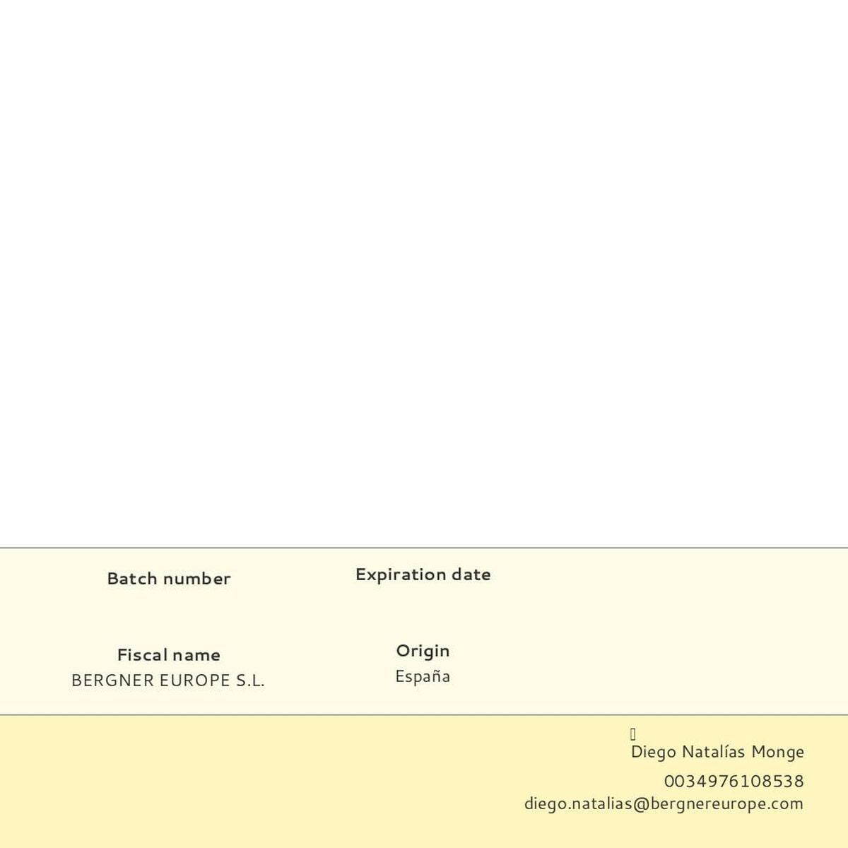 General Product Safety Regulations information:BERGNER EUROPE S.L.